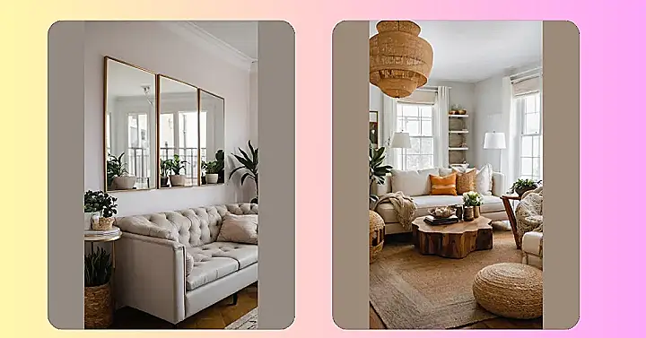 And speaking of cool, who knew you could make plants look like they’re photobombing your reflection? The little plant buddies peeking out from behind the mirrors make the whole place feel fresh, even if you haven’t actually opened a window in days. Just try not to get *too* inspired and start gluing fake flowers to everything, okay? Just kidding… mostly.