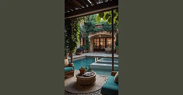 The coolest part is how chill it is, even with all that fancy stonework and ivy taking over. You could spend hours here, either dipping your toes in the water (because let’s be honest, attempting a full cannonball might disturb the vibe) or just chilling on those comfy-looking chairs. It feels ancient and modern at the same time, like history decided to take a dip in a pool and hang out. Just picture yourself here, maybe with a stack of comics or a good book, soaking in the sun and the super-relaxed atmosphere.