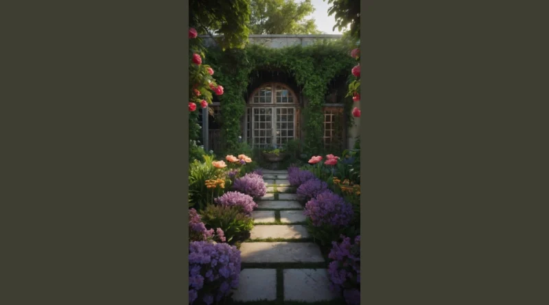 This garden is like a scene straight out of a fairy tale. Imagine you’re walking through a secret passage, with tall, leafy walls on either side. You see a beautiful archway leading to a cozy courtyard. The sunlight shines through the windows, creating a magical glow on the stone path. The scent of blooming flowers fills the air, and you can’t help but feel a sense of peace and wonder.