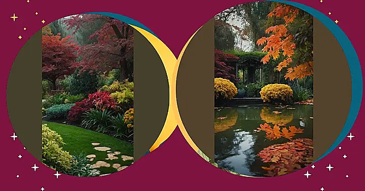 Imagine stepping into a garden that feels like a secret hideaway. You’re surrounded by fiery red bushes, like someone spilled a bucket of paint on them. And winding through it all is a little stream, sparkling in the golden afternoon light. You can almost hear the leaves crunching under your feet and smell the crisp autumn air. It’s like something out of a storybook, but even better, because you can actually be there!