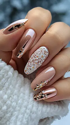 Forget frosty fingers! This winter, ditch the expensive salon and unleash your inner nail artist with some seriously cute DIY designs. The picture shows off some gorgeous nails, all shimmery rose gold and delicate white flowers – totally winter-chic, right? Imagine the compliments you’ll get when you show off your handiwork. No more boring winter nails, my friend! Get ready to sparkle and shine – even if you’re just binge-watching your favorite shows on a snowy afternoon. It’s way easier than you think!