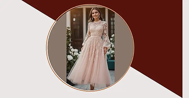 Getting ready for holiday parties can be a fun challenge, but with a dress like this, you’re practically floating into festive fun! This gorgeous blush number, with its super delicate lace and flowy tulle skirt, is basically saying, “I’m here to dazzle, enjoy the snacks, and probably win best dressed.” The puffed sleeves and high neckline make it feel extra special and unique, perfect for twirling through all those seasonal get-togethers without looking like you tried too hard (even if you totally did!).