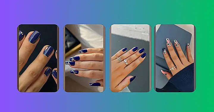 These nails are totally giving off “ice queen” vibes, but in the best way possible! Imagine yourself sipping hot cocoa by the fireplace, all cozy and warm, while your nails sparkle like tiny winter snowflakes. That deep blue is the perfect winter color, kind of like a midnight sky, and the sparkly silver details add a touch of magic – it’s like wearing tiny constellations on your fingertips! Who needs a diamond ring when you have this awesome nail art?