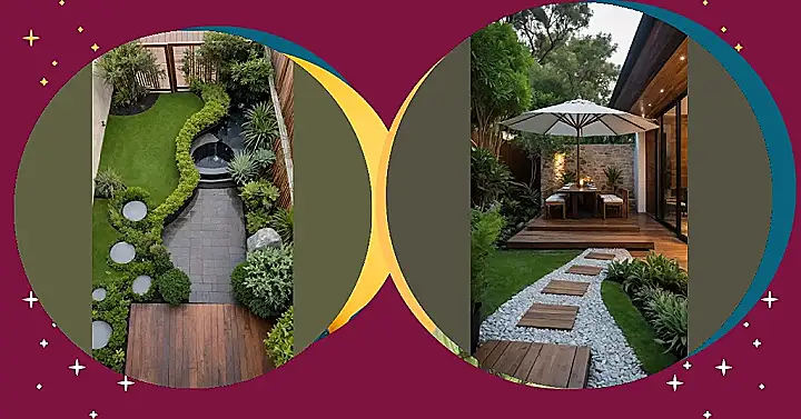 The way those stepping stones are laid out isn’t just a path; it’s practically a red carpet guiding you through your swanky, compact oasis. And those fluffy, golden plants lining the fence? They’re like nature’s own privacy curtains, adding a touch of glam and making your small space feel way more expansive and mysterious. This whole design is a masterclass in making every single inch count, turning what could be a forgotten corner into a vibrant, happening spot. Who knew that careful planning could make your backyard glow-up so hard, giving you the perfect backdrop for everything from late-night chats to the most Insta-worthy moments?