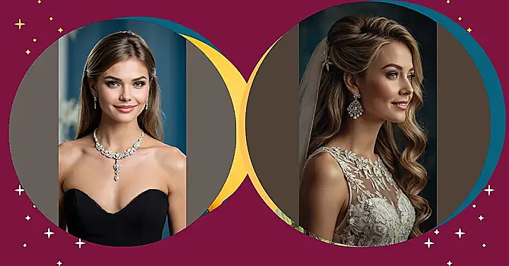 This picture is all about getting ready for a fancy event! The girl is looking pretty darn amazing with her sparkly necklace and earrings. You know what they say – “Diamonds are a girl’s best friend!” And you can see how happy she is to be wearing such gorgeous jewelry. Her outfit is perfect for a fancy gala, and her hair is styled in a way that looks both elegant and fun. It’s the kind of look that would make you feel like a million bucks!