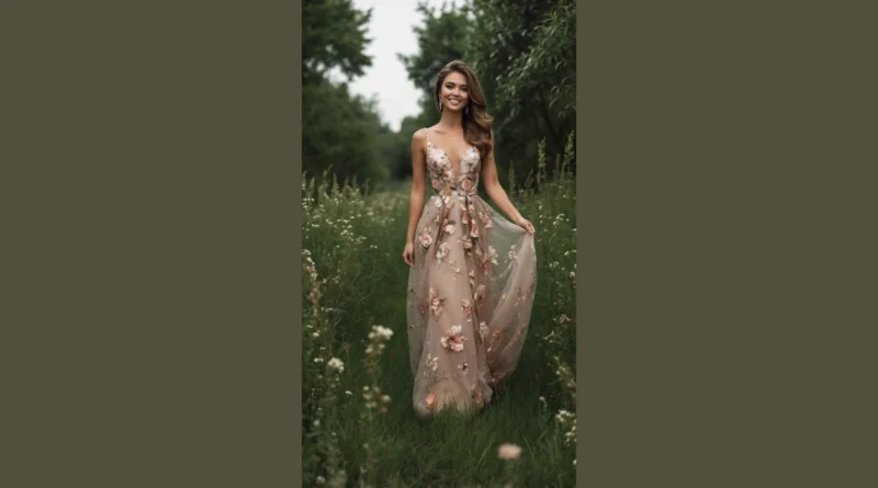 This dress is so decked out with beautiful flowers, it practically has its own ecosystem going on! Look closely, and you’ll see those petals aren’t just printed on; they actually pop out, giving the whole outfit a super cool 3D effect. It’s like someone sprinkled a magical garden all over her gown, making it totally unique and ready to turn heads. Let’s just hope a curious bee doesn’t mistake her for the snack bar!