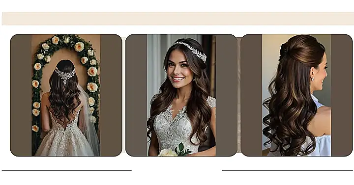 Alright, brides, let’s talk hair! The big day is almost upon us, and while you’ve got the dress sorted, let’s not forget about the hair. A half-up hairstyle offers you the best of both worlds by highlighting your stunning features from the front view while allowing you to embrace your inner goddess. Whether you’re rocking a medium-length mane or glorious long locks in a fabulous brunette hue, there’s a half-up look here for everyone!
