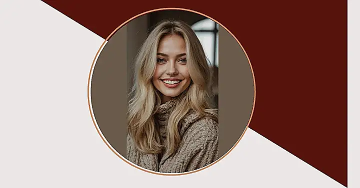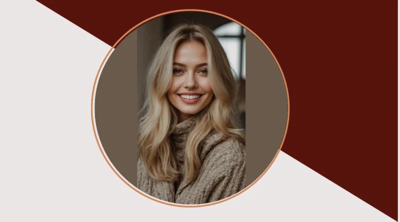 That winning smile totally pairs with the whole cozy vibe, making us wonder if she’s about to share the world’s best inside joke or maybe just reveal her secret to perfect hair days. She’s rocking a cable-knit sweater that looks so comfy, you just know it gives the best hugs – almost as good as her hair probably feels. Seriously, with that warm, creamy blonde framing her face, it’s like she’s got her own personal spotlight, making even a gloomy day feel a little brighter. Who needs a filter when your hair game is this strong?