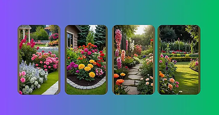 Imagine walking through this garden – you’d feel like you’re in a real-life fairytale! All those colorful flowers are like nature’s own glitter, and that perfectly manicured lawn is seriously screaming #gardengoals. Forget boring backyard barbeques, this is where you’d want to host a garden party and maybe even invite a fairy or two.
