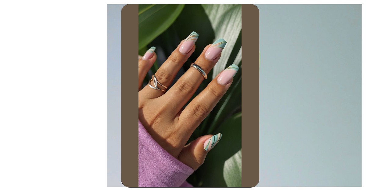 In your nail art reverie, journey with me to a sun-drenched oasis where palm trees sway gently in the balmy breeze. Captured on your fingertips is a lush landscape of vibrant greens and serene blues, each brushstroke a testament to the tranquility of a tropical paradise. Picture vibrant palm fronds unfurling in a graceful dance across your nails, their emerald hues creating a striking contrast against the azure backdrop of a clear, sunlit sky.