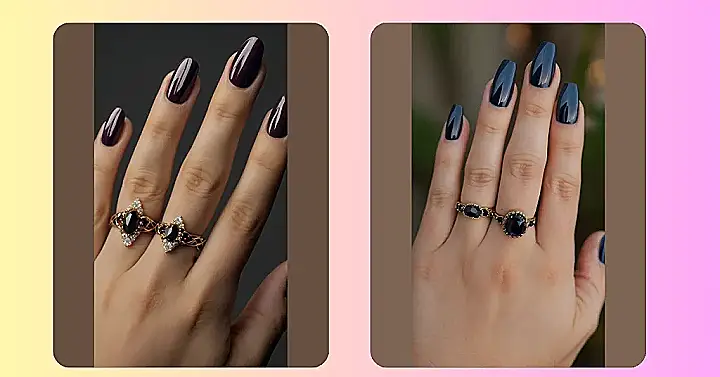 Those dark fall nails are totally rocking! It’s like the perfect combination of mystery and glam. The deep, rich color is giving off major “witchy vibes” while the sparkling ring adds a touch of extra magic. Those nails are like the cherry on top of a spooky-but-stylish outfit, like maybe a long black dress or a denim jacket – just like the one in the picture! Who needs a fancy costume when you have nails this awesome?