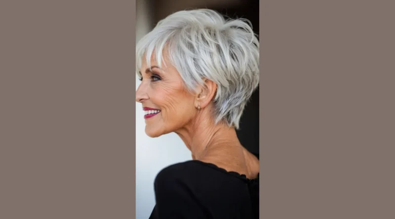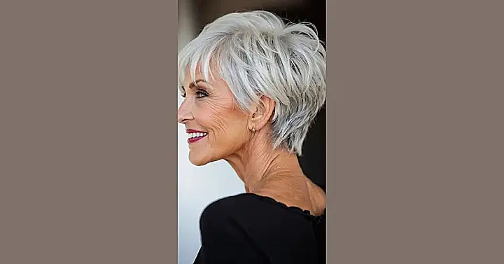 It’s not just her hair that’s got that “I’m rocking this look” attitude. Her smile says, “Hey, I’m happy with who I am,” and that’s what makes her look so awesome. She’s not afraid to embrace her age and show the world that being older doesn’t mean you have to be boring. In fact, it means you can have even more fun with your style! This hairstyle is perfect for anyone who wants to make a statement, and it’s definitely a conversation starter. Who wouldn’t want to chat with a woman who rocks a sassy, silver short cut with such confidence?