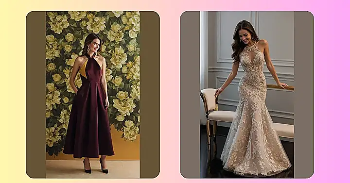 Putting on a dress like this makes you feel like you could conquer anything – from leading the debate club to successfully asking for extra dessert without feeling guilty. That sleek halter neckline means you don’t have to fuss with straps, leaving you free to focus on perfecting your confident smile, just like the one in the picture. It’s the kind of outfit that screams elegance but still looks super comfortable, which is basically the holy grail of women’s evening wear. Just try not to get too attached; we hear these dresses often refuse to go back into the closet after feeling so fancy!