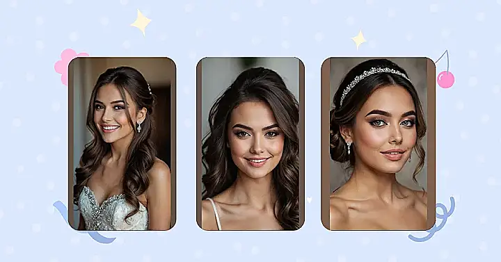 Beyond just the hair, this whole look screams ‘glam goddess has arrived!’ Her eyes are sparkling almost as much as that headband, and her makeup is so flawless, it probably comes with its own personal fan club. It’s the ultimate bridal glow-up, making her look ready for her big day, a red carpet event, or maybe even a spontaneous photoshoot where she’s just casually looking amazing. She’s definitely got that happy bride sparkle, proving that ‘glam bridal hair’ is just one piece of her show-stopping, ‘I’m marrying my best friend’ puzzle!
