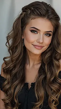 Check out that hair in the photo! It’s got those perfect waves flowing down, giving it that super glam feel, and then bam – the top is pulled back with a cute little braid detail. It’s like your hair is ready for business (looking stunning) and also ready to party (staying put!). This style keeps things neat up top so you can show off your face and maybe some sparkly earrings, while the bottom half is free to bounce along to all your favorite songs. Plus, it makes you look effortlessly put together, which is basically prom goal number one.