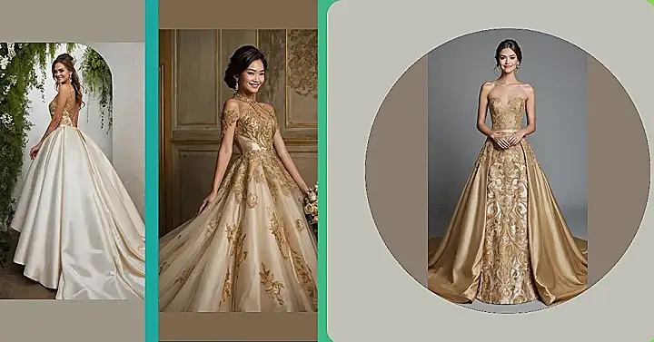 Who says weddings have to stick to the “boring” color palette? Let’s infuse some fun into tradition with dazzling gold wedding dresses that will make you feel like the queen you are! From stunning Champagne to radiant Rose shades, gold designs bring a touch of luxury to any ceremony. Picture you, walking down the aisle draped in gold that shines brighter than your beloved’s love for you—quite a statement, don’t you think?