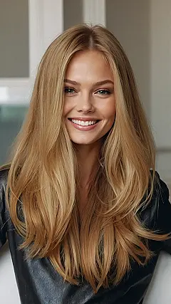 Imagine how much time and care went into keeping that hair so shiny and smooth. It must be like having a personal fairy godmother who dusts your head with golden dust every morning! That’s the kind of hair everyone wants, right? So perfect, you might even think it’s a wig, but it’s not! It’s real, it’s amazing, and it’s totally rocking the “honey blonde” look. Just picture yourself with hair like that, maybe you’ll get inspired to try a new look!