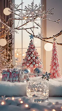 And check out all those gifts! Each one looks like it’s holding something perfectly fabulous, all wrapped up with pretty pink ribbons and nestled on what looks like a cloud of soft, white fur. It’s like a Christmas morning designed by a total style guru who absolutely adores pink. The twinkling lights strung everywhere add that extra sprinkle of magic, making the whole scene sparkle so much you might need sunglasses. Who knew Christmas could be this wonderfully glamorous and sweet at the same time? It’s the perfect backdrop if you’re aiming for a holiday vibe that’s less “rustic cabin” and more “dream mansion” with a side of sparkle.