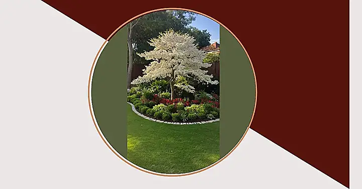 If gardens were trying to win awards for colour coordination, this one would definitely be on the podium for Best Use of Green and White. The vibrant green makes everything else pop, especially those bright white blossoms on the tree. It feels cheerful and clean, like the garden just finished tidying its room and is really proud of itself. It’s proof that sometimes, sticking to a simple, elegant colour combo like green and white can make a place look absolutely brilliant and inviting.