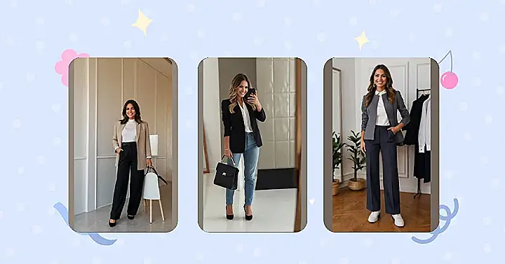 So, you’ve got the “samba work outfits” theme stuck in your head, huh? Well, maybe ditch the feather boas and sequins (for now!). This look is more about a confident strut than a full-on dance-off. Think “business on top, comfortable party below” with that blazer and jeans combo. You might not be shaking maracas at your desk, but you’ll definitely bring a fun, chill vibe to your workday.
