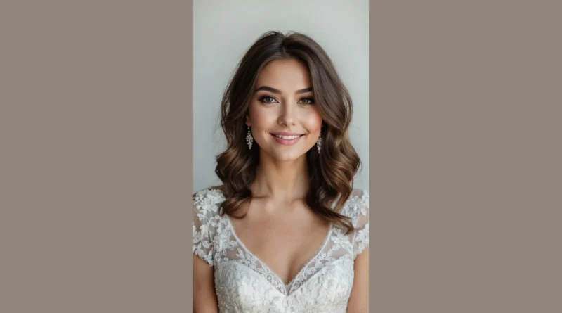Nobody wants to feel like their head is wearing a stiff hair sculpture on their big day, right? This friendly, flowy medium hairstyle means you can laugh, dance your heart out, and maybe even battle a gust of wind without needing a major hair intervention. It’s fancy enough to make you look stunning for every photo, but chill enough that you won’t be worrying about it falling apart halfway through the cake cutting. Basically, it’s the ideal hair choice for celebrating without having your hair steal the show in a bad way, letting your happy smile take center stage!