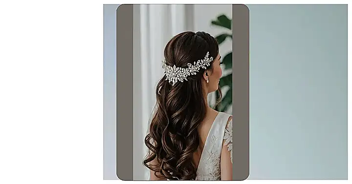 Think of it as the ultimate hair compromise: a little bit fancy, a little bit free, and a whole lot fabulous. The sparkly hairpiece adds that extra “wow” factor without going overboard, and it definitely beats trying to coordinate a veil with your dress, flowers, and personality. If you want a style that looks like you tried (but not *too* hard), this could be your winner!
