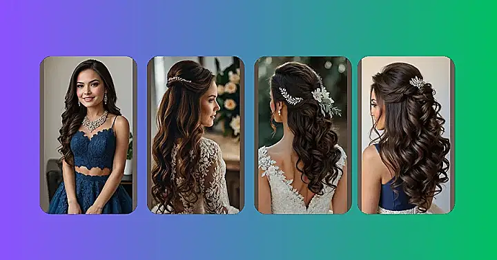 Choosing a fancy hairstyle for a big day is kind of like picking the perfect outfit for a Friday night, but way more pressure! That’s where the half up, half down style comes in, like a superhero cape for your hair. It’s basically the ultimate hack because you get the best of both worlds: some hair pulled back so you can actually see and dance without it sticking to your lip gloss, but also lots of lovely flowy bits so you still feel totally glamorous, not like you’re about to hit the gym. It’s the “I’m fancy but also practical” vibe we all aspire to.