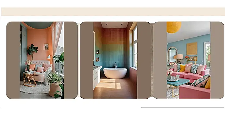 Step into this room and try not to grin – we dare you! It’s like a tropical sunset decided to move into your living space, bringing all the good vibes with it. Seriously, those peachy walls and the cool mint ceiling are practically a secret handshake for your brain, whispering, ‘Time to chill and be awesome!’ This is peak ‘dopamine decor’ in action, proving that your room doesn’t just hold your stuff; it can actually give you a little happy boost, no actual sunshine required.