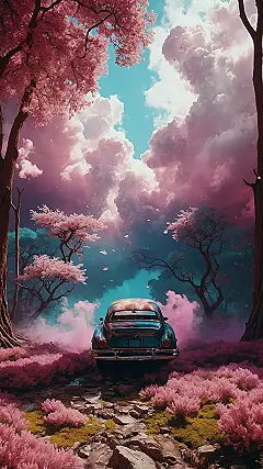 Picture this: your car accidentally drives into a giant cloud of pink fuzz that tastes like bubblegum, surrounded by flowers so bright they practically wink at you. That’s basically what’s happening in this picture, where the sky is a cotton candy dream and cherry blossoms are going totally wild. It’s like the universe decided to paint everything extra sweet for May, and your ride somehow got front-row seats to the whole spectacular, slightly ridiculous show. Honestly, if this doesn’t scream “perfectly bizarre May wallpaper,” I don’t know what does.