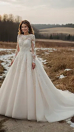 Brrr! Getting married in winter means you need a dress that’s not just stunning, but also smart enough to keep you from turning into a human icicle. Look at this dazzling gown with its beautiful long sleeves and intricate lace! It’s basically saying, “Yes, I’m fabulous, and no, I don’t need a blanket!” This kind of dress is totally on point for a Christmas wedding, letting you sparkle brighter than any fairy lights while still staying cozy enough to maybe sneak an extra gingerbread cookie. Plus, those sleeves? Perfect for dramatic arm gestures during your vows or when you’re trying to catch the bouquet.