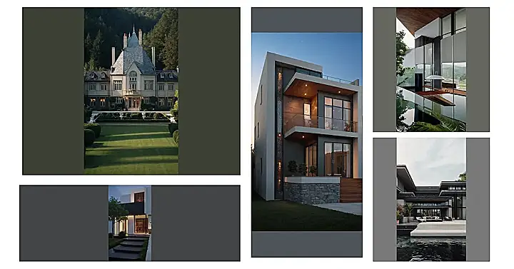 This place is definitely more about the “glamour” than the “house.” It’s all about sleek lines, intricate details, and a bit of mystery. You can’t even see the inside, just imagine all the amazing stuff hidden behind those dark windows! It’s the kind of house that makes you want to put on your fanciest outfit, grab a glass of something bubbly, and just soak up the atmosphere. This place is definitely a showstopper, even if it is a bit on the serious side.
