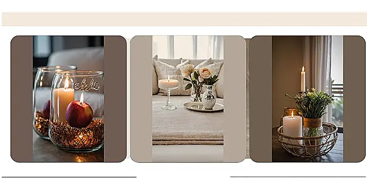This picture is all about proving that you don’t need to be a millionaire to have a home that feels like a five-star hotel! Just look at this gorgeous setup – a simple, elegant candle, some beautiful but affordable flowers in a stylish vase, and a comfy couch in the background. It’s proof that a little bit of thought and creativity can transform your space into a relaxing oasis, without emptying your wallet. The soft lighting and pretty details create a luxurious feel, making your home a much happier and more inviting place to be.