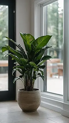 Now, imagine you’re walking into that room. The first thing you’d see is that awesome plant, like it’s welcoming you home. It’s got this cool vibe that’s chill, but also kinda bossy. The leaves are all big and dramatic, like it’s ready for its close-up. It’s definitely got a “I’m too cool for school” attitude, which is something we can all relate to, right? Seriously, it’s like the plant’s giving you a little pep talk, reminding you that you’re awesome, too. So, next time you’re feeling down, just remember this: you’ve got the power to bring some life and style to your own space, just like this plant is doing.