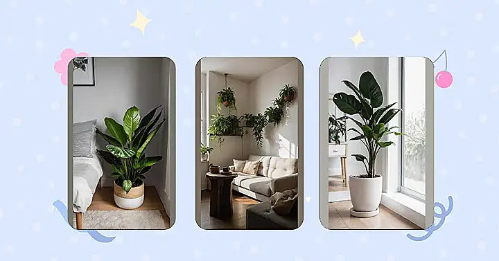 Getting room plants is basically inviting a bunch of quiet, green roommates over. They don’t steal your snacks, they never hog the bathroom, and their only demand is a bit of sunlight and some water (and maybe not to be completely forgotten). Look at this living room; it’s practically a botanical garden chill zone! That massive leafy friend near the window is clearly the main character, soaking up all the rays, while the smaller ones are just vibing on the shelf and table, making the whole place feel way less boring than a plain wall.
