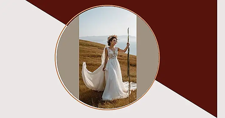 Seriously though, this dress is all about ditching the stuffy traditions and embracing your own unique style. Forget Cinderella’s ballgown, this is more like Pocahontas getting married in the Enchanted Forest. And who wouldn’t want to feel like a Disney princess, but like, a *cool* Disney princess who hikes and dances barefoot in the moonlight? It’s definitely a “marry your best friend and then have a huge outdoor party” kind of dress!