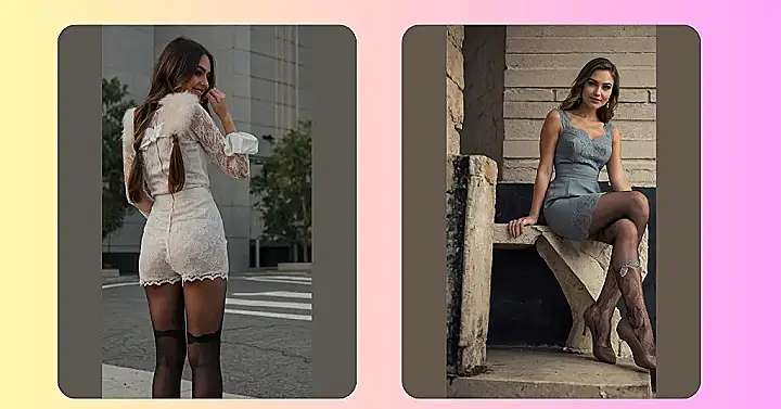 Let’s start with a classic and timeless Outfit option – pairing lace stockings with a little white dress for a look that is fresh, elegant, and sophisticated. The simplicity of the white dress combined with the intricate lace stockings creates a chic and refined ensemble that is perfect for a daytime event or a dressy brunch. Add a pair of classic heels in a neutral shade to complete the look and create a polished Outfit that is both stylish and sophisticated. The contrast between the white dress and the lace stockings adds a touch of femininity and grace to the overall ensemble, making it a perfect choice for a variety of occasions.