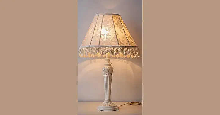 This isn’t just a lamp; it’s practically a celebrity in the world of home decor, rocking a lampshade that’s got more style than half your wardrobe. Check out that cool, almost glowing pattern, making the light do a fancy dance as it comes through. And those tassels? They’re like tiny, enthusiastic cheerleaders hanging out, ready to celebrate every time you turn the light on. It’s the kind of decorative lampshade that makes your room feel instantly upgraded, even if your bed is still unmade and your socks are hiding under it.