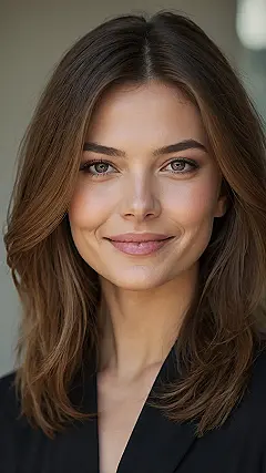 Looking at this awesome picture, you can totally tell she’s got that perfect hair vibe going on! Her brown hair just flows beautifully, and you can practically feel the bounce and movement in it. That’s the magic of a great layered haircut, folks! It’s like her hair decided, “Nope, we’re not doing a boring, flat day today,” and instead chose to live its best, voluminous life. Seriously, those layers make her hair look so effortlessly cool, it probably wakes up like this while the rest of our hair is still debating whether to cooperate with a ponytail or just give up.
