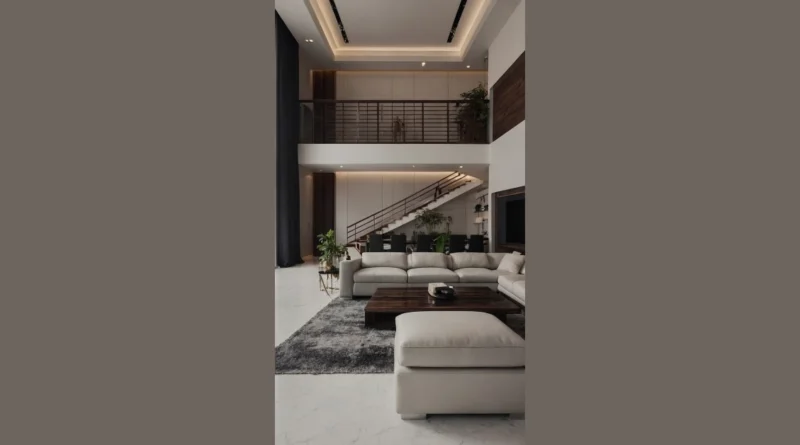 This living room is so classy, it makes even your average Wednesday feel like a fancy gala! You’ve got the sleek, modern furniture, the soft, fluffy rug, and the cool, white marble floors that make you want to slip your socks off and walk around barefoot. The open-concept design lets you see the fancy staircase leading up to the next level, kind of like the grand entrance to a secret party!