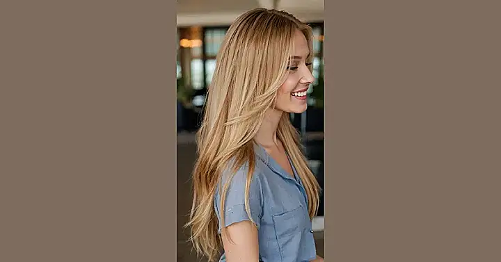 Imagine how much time and care went into keeping that hair so shiny and smooth. It must be like having a personal fairy godmother who dusts your head with golden dust every morning! That’s the kind of hair everyone wants, right? So perfect, you might even think it’s a wig, but it’s not! It’s real, it’s amazing, and it’s totally rocking the “honey blonde” look. Just picture yourself with hair like that, maybe you’ll get inspired to try a new look!