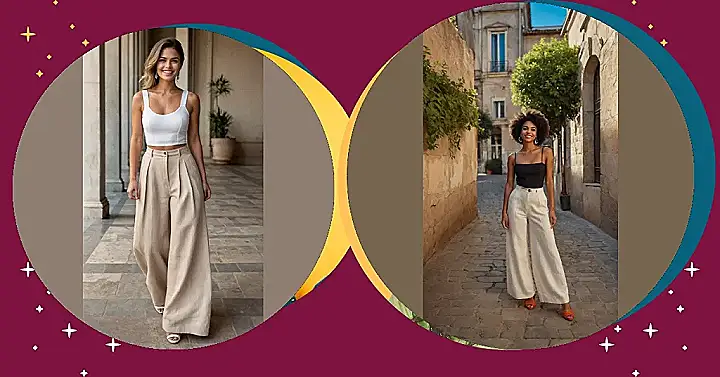 These are not just any pants, they’re the legendary linen pants! Look how breezy and comfy they seem, like they’re secretly telling your legs to relax while you look totally put-together. It’s like wearing your favorite wide-leg pants to a fancy party in a European alleyway, except you actually look amazing. Seriously, pairing them with a simple top like this makes you look ready for sunshine and cobblestone adventures without feeling stuffy at all.