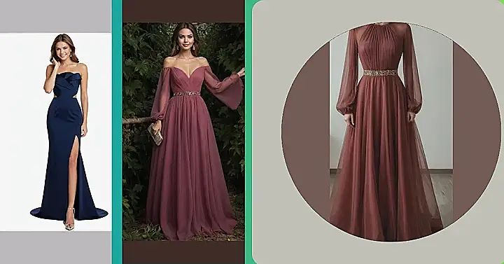 Seriously, look at that incredible flowing skirt! This long gown design isn’t just a dress; it’s a fashion statement that says, “Yes, I might trip, but I’ll look fabulous doing it.” That deep, earthy color is unique and super chic, and the intricate top adds just the right amount of sparkle without needing a ton of jewelry. It’s the perfect balance of looking like you belong on a magazine cover while still being able to awkwardly shuffle your way through the crowd.