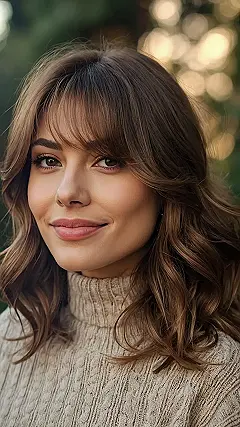 Ever dreamt of having a hairstyle that screams “I woke up like this… fabulous!”? Well, check out this look! It’s all about soft layers and those super stylish bangs. They frame your face and make your eyes pop. It’s like adding a cool, confident filter to your everyday look, without even needing an app!