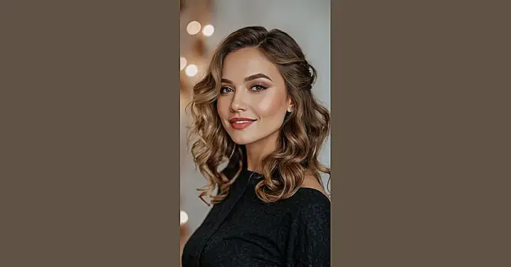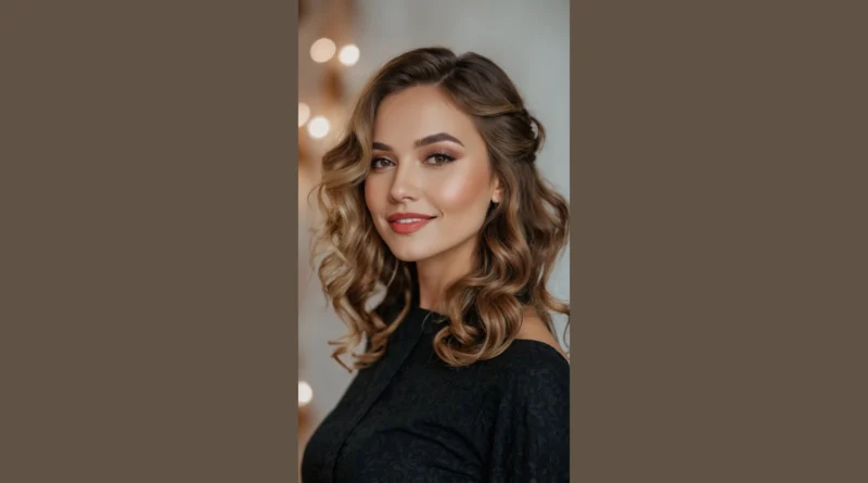Speaking of looking stunning, check out how perfectly these curls frame her face, practically whispering, “I woke up like this… after an hour with a curling iron, but totally worth it!” The magic of loose curls for a wedding is how they make you look effortlessly glam. You can chat with your aunt, dodge rogue confetti, or even pull off some epic dance moves without worrying your hair is going to stage a rebellion. Plus, with a little bit pulled back, it’s like a secret handshake between elegance and ‘let’s party!’ – just enough structure to feel special, but enough bounce to feel like yourself, ready to celebrate without a single hair-related panic attack.