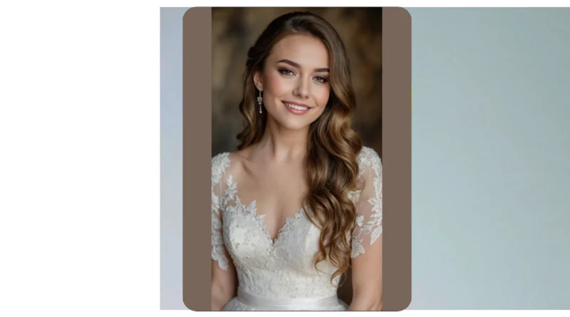 And let’s be real, those effortlessly beautiful curls are totally vibing with her amazing wedding dress. It’s sparkling with lace and details, making her look like she just stepped out of a fairytale, probably thinking, “My hair looks incredible, my dress is stunning, and soon I get to eat cake!” This whole look screams “happy bride who’s ready to dance the night away without worrying if her hairstyle will turn into a chaotic frizz monster.” It’s all about feeling comfy, classy, and ready for a lifetime of smiles, starting with how perfectly styled her loose curls are.