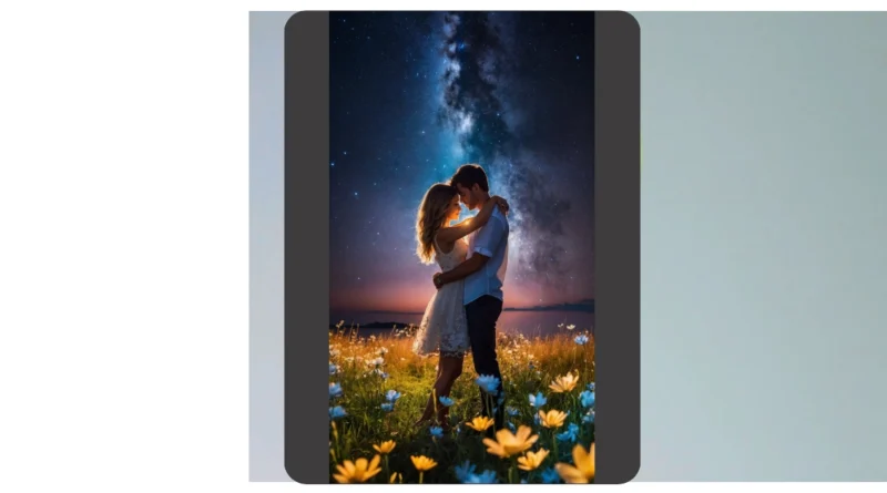 This isn’t just a picture; it’s practically a dream you can put on your phone! With a sky full of twinkling stars that makes the Milky Way look like a sparkly highway, and a couple sharing a super sweet moment in a field of glowing flowers, it’s pure magic. Imagine this epic scene as your new couple wallpaper – it’s definitely way more impressive than that selfie you took together in the mall, and it makes every ordinary phone unlock feel like a grand romantic gesture. Just try not to set your expectations too high for your next date night, unless you happen to own a private observatory and a flower farm.