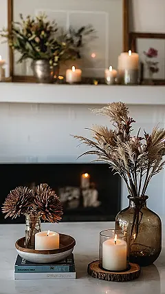 This picture is all about creating a luxurious-feeling home without breaking the bank! See those gorgeous dried flowers? They’re super trendy right now and way cheaper than fresh blooms that wilt after a week. And those candles? A few strategically placed candles create instant ambiance – way more impact than a fancy chandelier (which, let’s be honest, is probably way out of budget!). You can get amazing-smelling, long-lasting candles at surprisingly affordable prices.