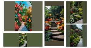 This isn’t just a garden, folks; it’s basically where relaxation goes to live its best life, making it the ultimate dream garden we all secretly wish for. Those super cool, perfectly spaced stepping stones look like they’re inviting you on a secret quest, or maybe just leading straight to a hidden snack stash – fingers crossed for the latter! You can practically hear the “ahh” of someone finally kicking back after a long week. Seriously, who wouldn’t trade their usual backyard weeds for this perfectly manicured tropical paradise? It’s so pristine, you might feel compelled to wear tiny slippers just to keep everything spotless.