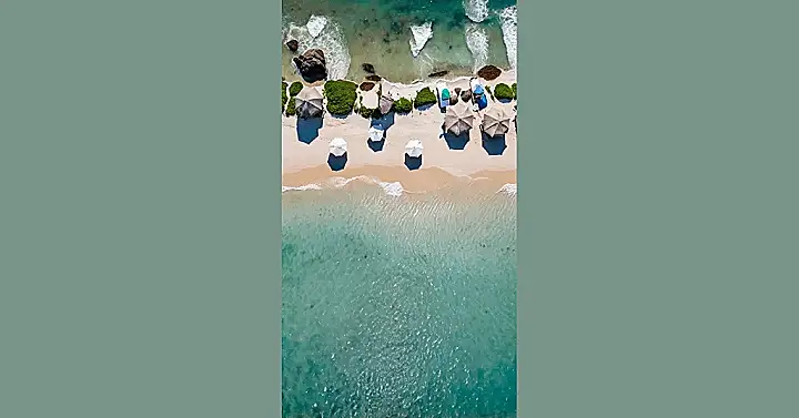 Trying to get the perfect beach photo can be a hilarious adventure. You see these awesome shots from above, showing off the cool umbrellas lined up on the sand and the stunning blue water, looking all peaceful and perfect, but getting *your* photo involves dodging seagulls, strategically hiding that weird blob of seaweed, and trying to make your hair look less like a bird’s nest in the sea breeze while the waves lap at your feet.