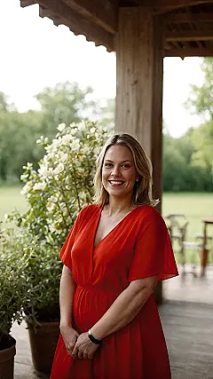 This vibrant red dress isn’t just about color; it’s about the whole mood. Standing against that charming porch and those gorgeous white flowers, it’s like the perfect outdoor selfie backdrop came to life. This outfit is super versatile, making you look polished enough for a family gathering but also comfy enough to totally relax and enjoy the breeze. It’s a reminder that sometimes, the simplest, boldest choice, like a stunning red dress, is all you need to feel amazing and ready for whatever delightful day awaits.